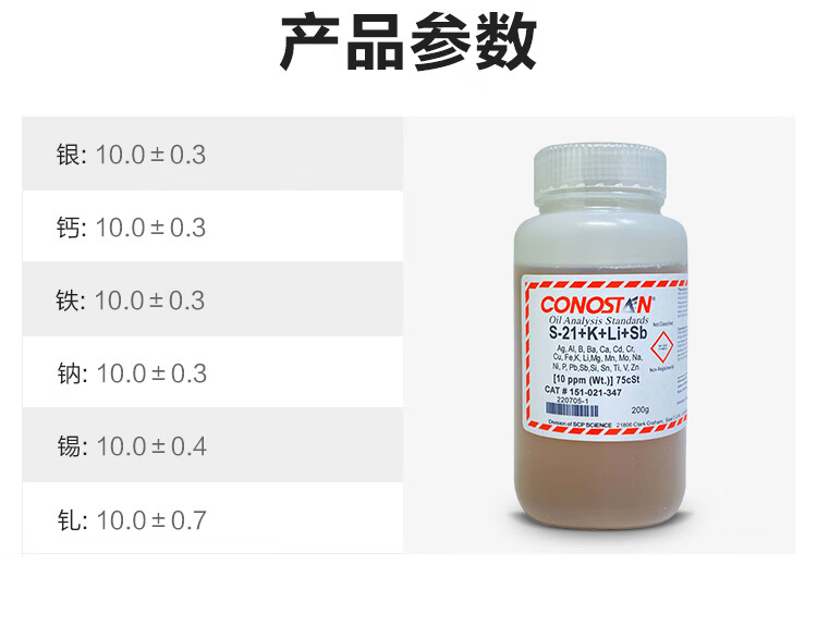 CONOSTAN 10ppm多元素混合標油主要應用于化學檢測儀器,輔助檢測化工品性能。
