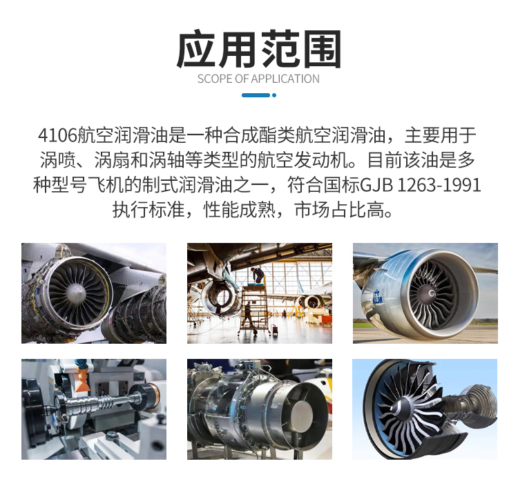 長城潤滑油一坪廠生產的4106航空潤滑油是一種合成酯類航空潤滑油,主要用于渦噴、渦扇和渦軸等類型的航空發動機。目前該油是部隊多種型號飛機的制式潤滑油之一,符合國軍標GJB 1263-1991執行標準,性能成熟,市場占比高。