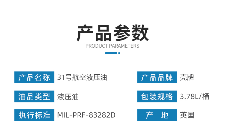 殼牌31號航空液壓油英文全稱AeroShell Fluid 31,是一種以聚α烯烴為基礎油的合成航空液壓油。該油符合美國軍事標準MIL-PRF-83282D執行標準,是新一代制式耐燃液壓油之一,在業內占有重要比重。該油主要用于高溫環境下的航空用于系統,對提升飛機特別是地空執行任務飛機的安全性來講有著重要的意義。