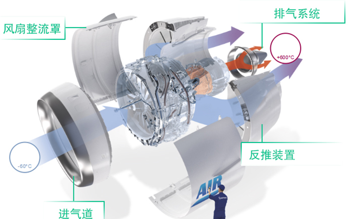 在飛機的動力系統(tǒng)中,大家見到最多的就是飛機短艙系統(tǒng),也就是包裹在航空發(fā)動機外面的白色圓筒。這個部位由進(jìn)氣道、風(fēng)扇整流罩、反推裝置、排氣系統(tǒng)四大部分組成,它為發(fā)動機工作提供所需工作環(huán)境,可以說是發(fā)動機的房子。